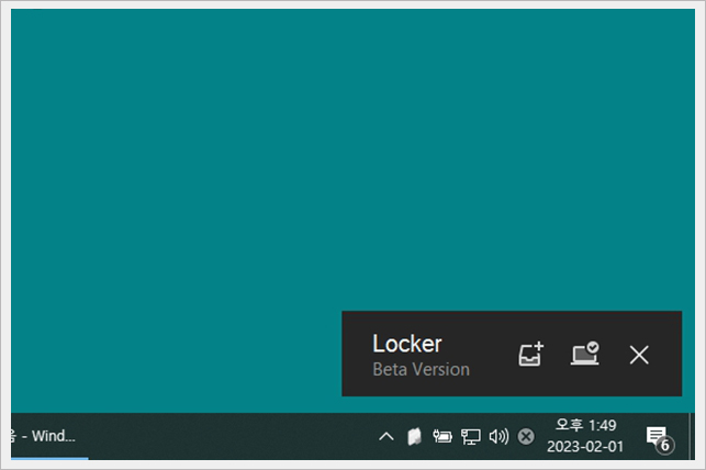 aselocker 프로그램이 정상적으로 실행되면 자신의 모니터 오른쪽 하단에 위 이미지처럼 보인다.